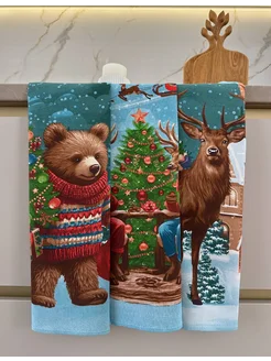 Полотенце кухонное вафельное набор 3 шт Новый год 2026