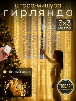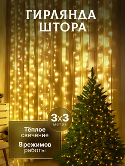 Гирлянда штора на окно 3х3 интерьерная новогодняя