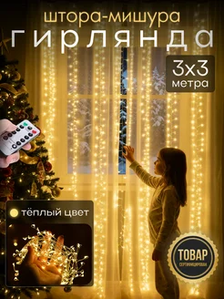 Гирлянда штора роса новогодняя 3*3 с пультом