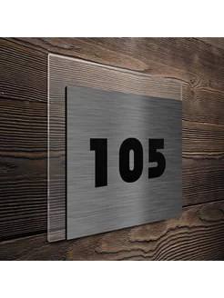 Табличка на дверь квартиры, самоклеящаяся №105 серебро