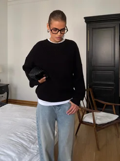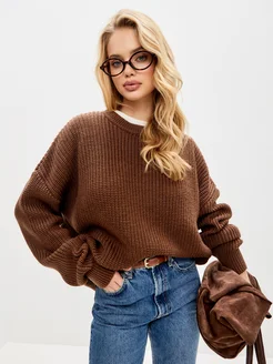 Свитер оверсайз вязаный джемпер с длинным рукавом