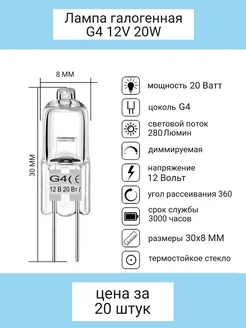 Галогенные лампочки G4 20Вт 3000К капсульные 20 штук