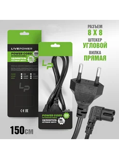 Кабель питания С7 2x0,75 мм, 1.5 м. штекер угловой