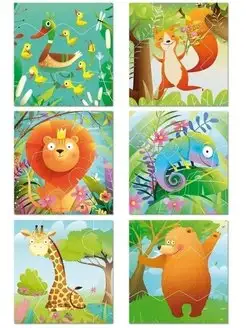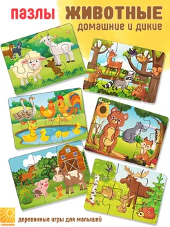 Пазлы деревянные для детей 6 шт Домашние и дикие животные