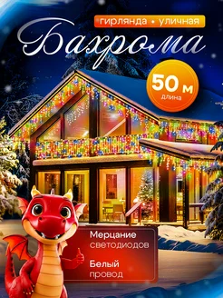 Гирлянда уличная бахрома 50 метров цветная