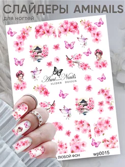 Слайдеры наклейки на ногти сакура цветы веточки лето WP0015
