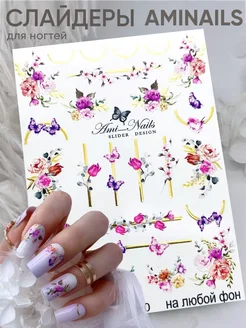 Слайдеры наклейки для ногтей цветы френч лето GB0220