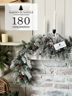 Гирлянда еловая заснеженная с шишками и ягодами 180 см