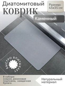 Диатомитовый каменный коврик для ванной и кухни 45х35 см