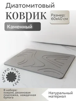Диатомитовый каменный коврик для ванной и кухни 60х40 см