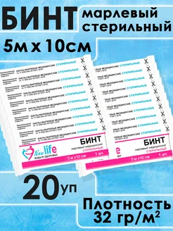 Бинт марлевый стерильный медицинский 5м х 10 см 20 штук