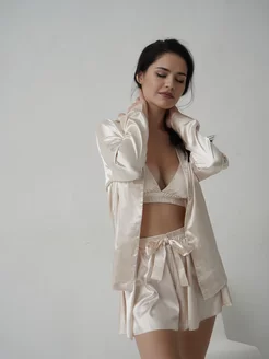Пижама тройка с шортами атласная