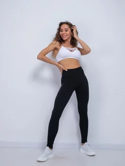 Леггинсы в рубчик спортивные с высокой посадкой лосины