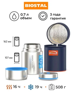 Термос для еды супа с широким горлом 0.7 л с чехлом (термо)