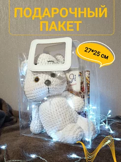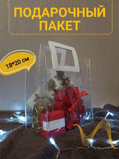 Подарочный пакет прозрачный с белой кожаной ручкой