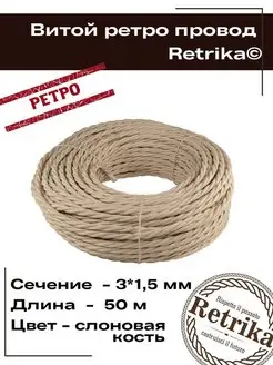 Ретро провод витой кабель 50 метров 3х1,5 мм