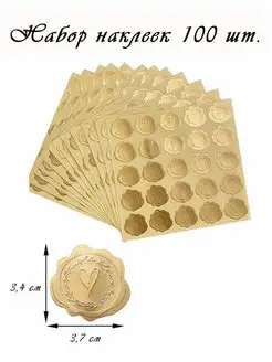Наклейка "Печать с сердцем" тиснение 100 шт. золото