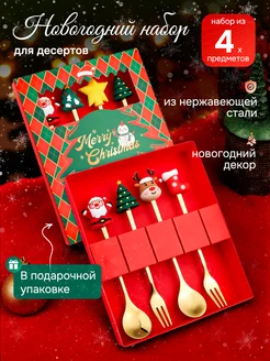 Новогодний набор металлических столовых приборов 4 шт