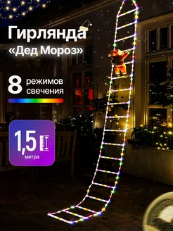 Новогодняя гирлянда светодиодная Дед Мороз на лестнице