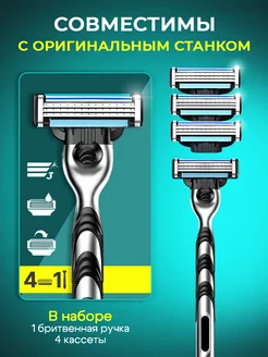 Бритва мужская станок для бритья c 4 кассетами 3 лезвия