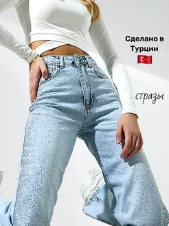 Джинсы со стразами прямые трубы