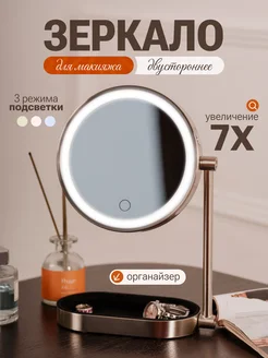 Зеркало настольное с подсветкой и увеличением для макияжа