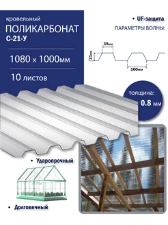 Прозрачный пластиковый шифер С-21-У 0,8мм 1080х1000 мм