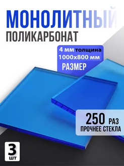 Монолитный поликарбонат 4мм синий 100х80 см 3 шт
