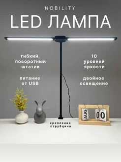 Светильник настольный гибкая на струбцине двойная