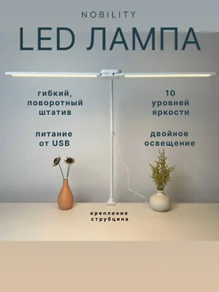 Лампа настольная светильник гибкий на струбцине двойная