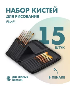 Кисти для рисования в школу в пенале, набор 15 шт синтетика