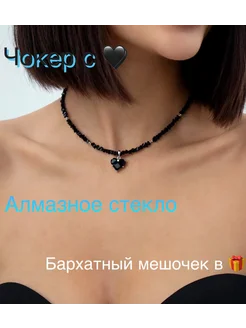 Чокер черный с подвеской сердце из алмазного стекла