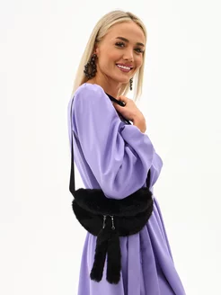 Сумка через плечо кросс-боди маленькая меховая с подвесками