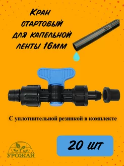 Кран для капельной трубки 16мм с резьбой 1 2 дюйма (20шт)