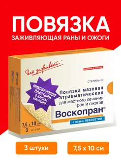Повязка Воскопран противовоспалительная 7,5х10 cм 3 штуки