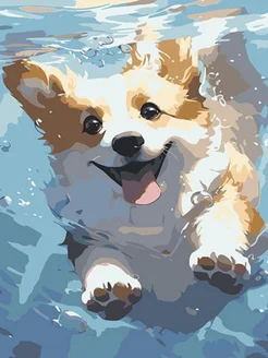 Картина по номерам корги в воде