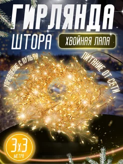 Новогодняя гирлянда штора 3х2 метра теплый свет роса