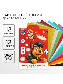 Картон цветной с блёстками, А4, 12 листов, 12 цветов