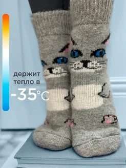 Носки теплые шерстяные домашние вязаные новогодние сер кот