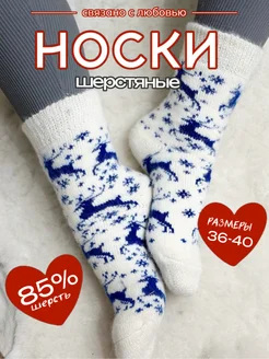 Носки теплые шерстяные вязаные новогодние голуб олени