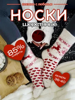 Носки теплые шерстяные вязаные новогодние сердечки олени