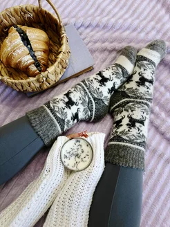Носки теплые шерстяные вязаные новогодние олен елки белом