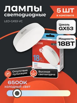 5 ШТ Лампочка светодиодная GX53 18 Вт 6500К холодный свет
