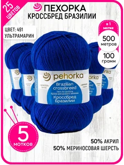 Пряжа для вязания Кроссбред Бразилии, мериносовая, 5 мотков