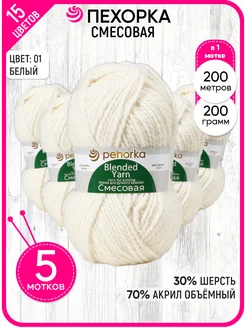 Пряжа для вязания Смесовая, шерсть акрил, белая