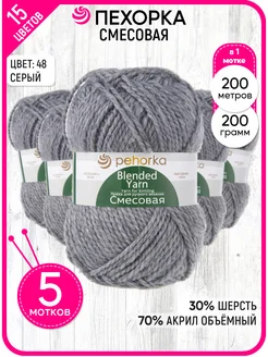 Пряжа для вязания Смесовая, шерсть акрил, серая