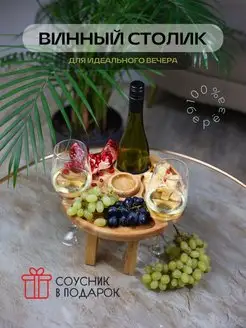 Винный столик 2 бокала деревянный Менажница Винница Поднос