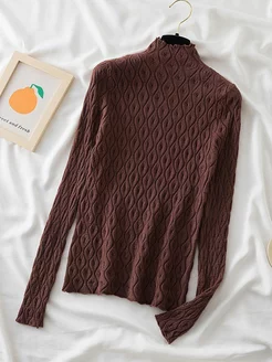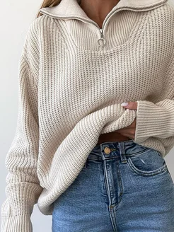 Теплый вязаный свитер женский оверсайз с горлом на молнии