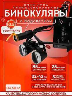 Бинокулярные очки-лупы x3,5 с подсветкой