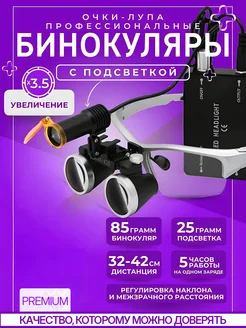 Бинокулярные лупы очки x3,5 с подсветкой для стоматолога